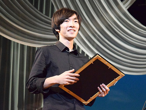 - 「完成度の高い楽しい演奏」とエリック・ミヤシロ氏。富士通テンより、「レコーディング権」が副賞として授与されました。