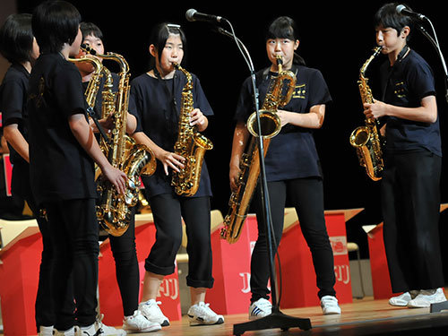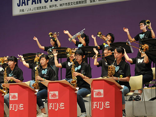 高校生の部も4年連続で兵庫県立高砂高等学校「Big Friendly Jazz Orchestra」が神戸市長賞を受賞。「先輩方の大きな背中を見て、憧憬の念を抱いて練習に励んだ集大成の演奏」を披露し、チーム“石田組”の2年間の思いをステージにぶつけました。ベストサウンド賞(富士通テン賞)は、甲南高等学校甲南ブラスアンサンブルが受賞。クラブのモットーである「Be Happy Together」で観客とともに楽しめる演奏が光りました。