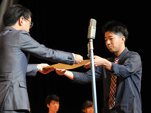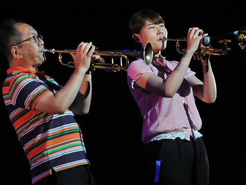講評では中学生の部の指導講師を務めた、藤井司朗さんは「ジャズは大人の表現が要求される音楽ですが、中学生で大人の表現は難しく、その中でジャズを表現するには高い技術が求められます。ジャンルにとらわれず、基本的な楽器の演奏技術を底上げしながらジャズの表現に結びつけてほしい」とエールを送り、高校生の部の指導講師を務めた、宗清洋さんは「各校ともにいろいろな楽曲を手に入れることができるようになり、レパートリーが増え、レベルに合った選曲でサウンドもよくなっています。その結果、個人のすばらしいプレイヤーが数多く誕生し、ベストパフォーマンス賞の選考も苦労しました」と、個人賞を含め、審査の難しさを振り返りました。