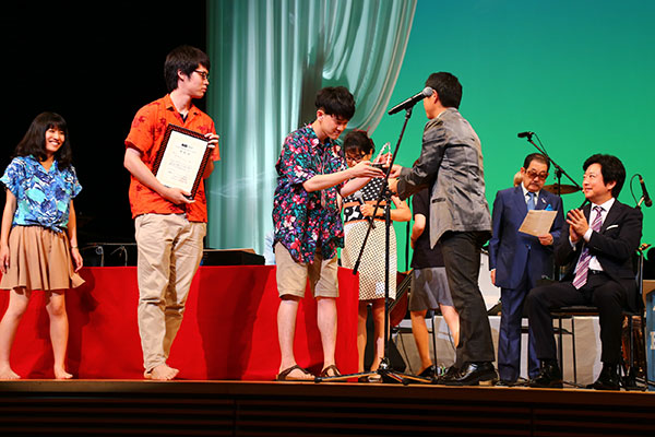 表彰式では「審査基準も課題曲もありません。各団体の個性を活かしたい。こんなに高いレベルのコンテストは世界のどこにもありません。就活には役だたなくても、長い人生の中では必ず役立つでしょう」と審査員長の内堀 勝氏。今回YBBJCの発展に尽力された各氏に功労賞が贈られましたが、そのひとり瀬川昌久・前審査員長は、かつて「僕の夢はメイド・イン・ジャパンのビッグバンド・ジャズが、世界へ向けて発信していくこと」と語っていましたが、その夢はもはや現実となって明日へ向かっているのでは。