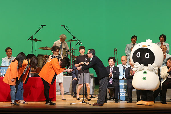 - 「スウィングして一体感があった」と守屋純子氏。富士通テンより、「レコーディング権」が副賞として授与されました。