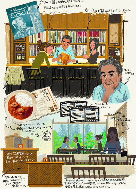 小松さんは2009年に開店するまで出版社に勤務。中学生のとき以来ずっとジャズに惹かれ、各地のジャズ喫茶を探訪。収集したレコードは50〜60年代のメインストリーム中心に約4000枚。その中にはビッグバンドの名盤も相当含まれている。今鳴っているのは『Basie Is Back』。お客様からジャズ喫茶でビッグバンドを聴けるってめずらしいねといわれるのだそう。