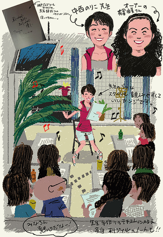 レッスンは歌詞を声に出して読みながら、先生の解説によって理解を深めるといった感じ。とても気さくでなごやかな雰囲気である。これなら初めて参加する人でもすぐになじめることだろう。