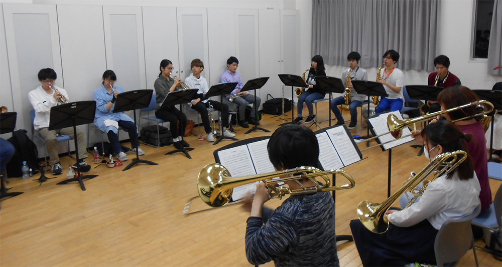 伊藤「そうですね。リズム隊やサックスはジャズコースからメンバーが集まるのですが、金管はなかなかいなくて…笑 クラシックの子たちに頼っています。 練習は週に2回で、合奏のみです。」